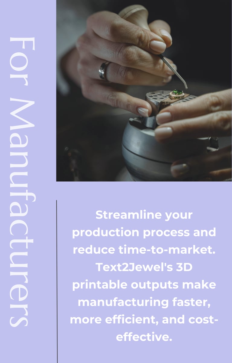 Whether you're a small design studio or a large manufacturer, Text2Jewel adapts to your needs and grows with your business