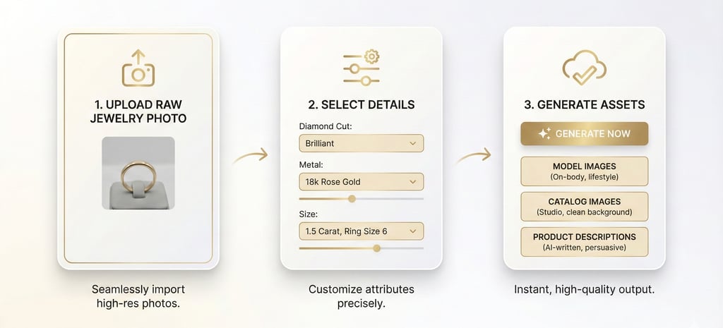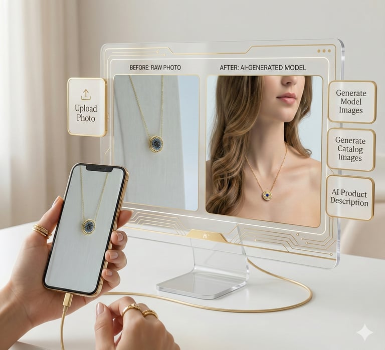 Transform Raw Jewelry Photos into Studio-Quality Images & Human-like Model Shots — Instantly